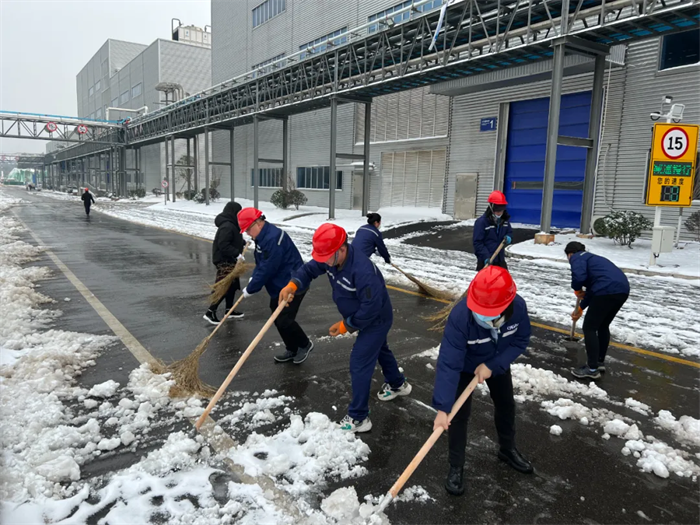 12月26日下午2點,西部產業基地道路積雪結冰嚴重,EHS部發出路面積雪厚度15厘米的紅色預警。為清理積雪、方便員工出行,公司第一時間發布《掃雪除冰倡議書》,立刻得到全體干部員工的積極響應。